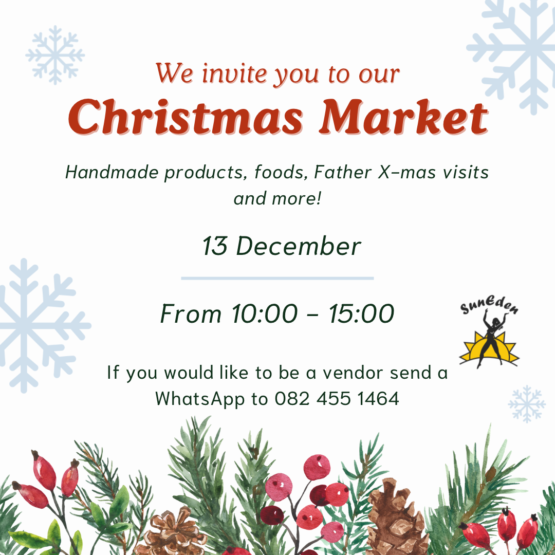 The market will take place from 10:00 - 16:00. To book your spot contact Karine on WhatsApp 082 455 1464
