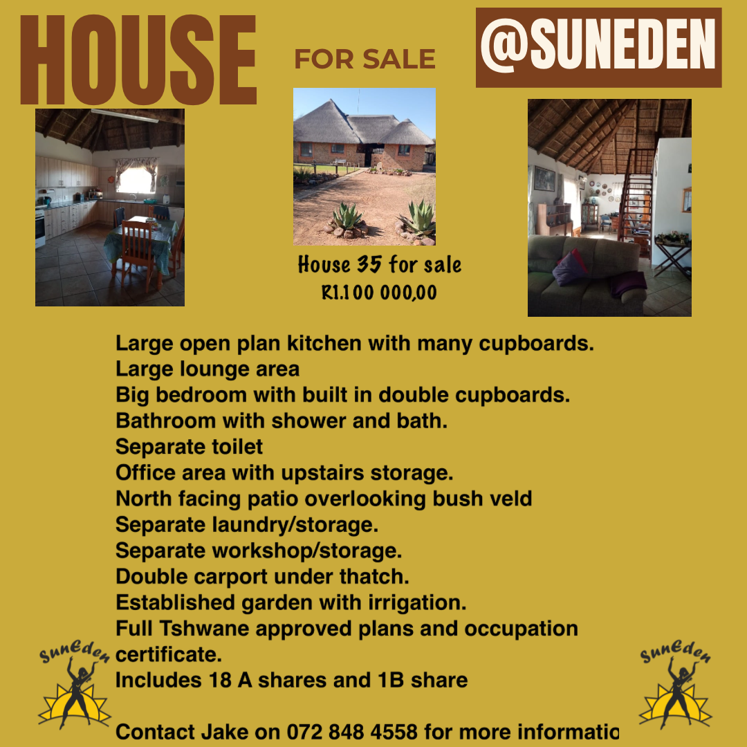 Large open plan kitchen with many cupboards. Full Tshwane approved plans and occupation certificate. Includes 18 A shares and 1B share